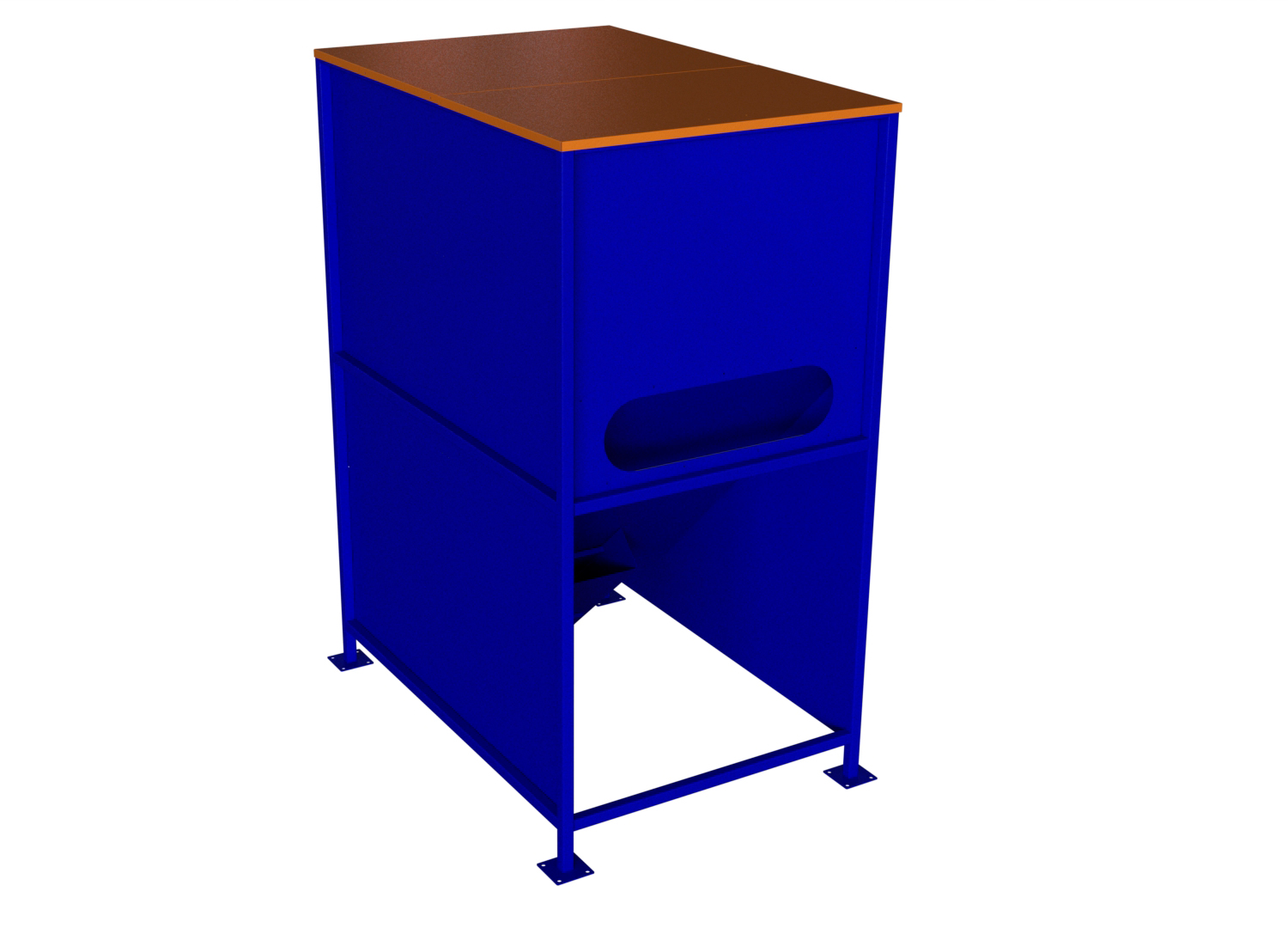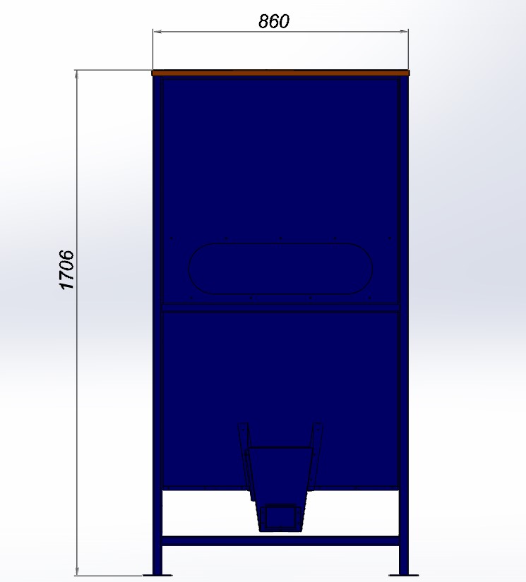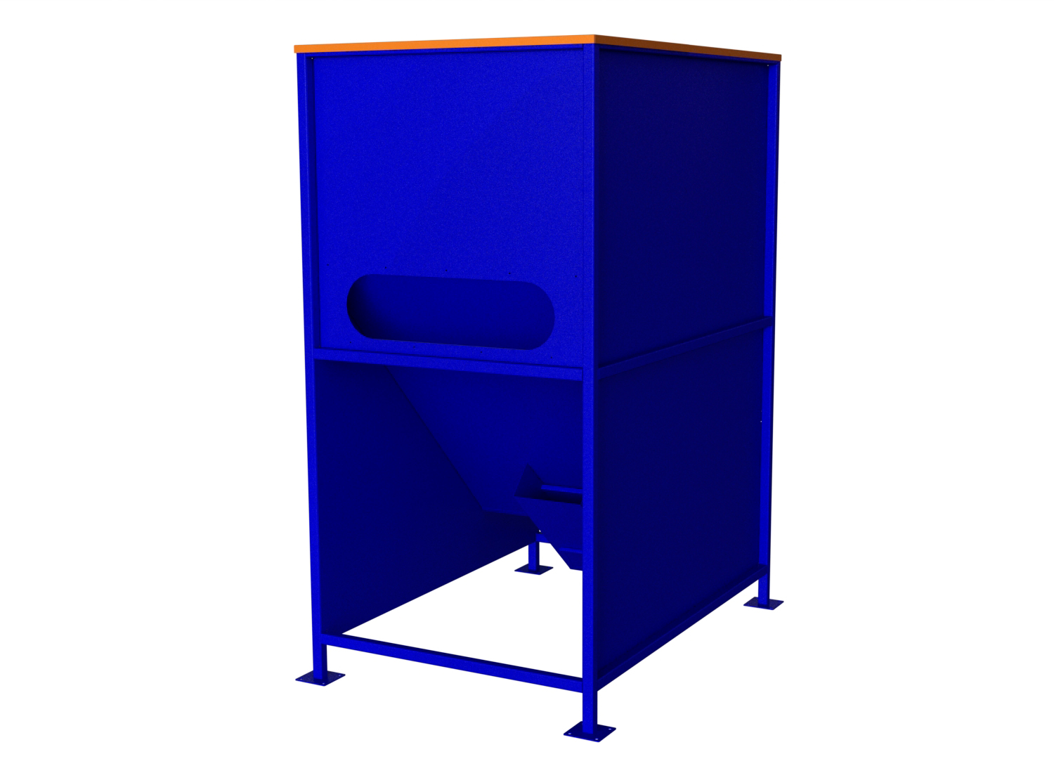 Бункер окрашен порошковой покраской синего и оранжевого цветов. По желанию заказчика бункер может быть окрашен в любой цвет.
