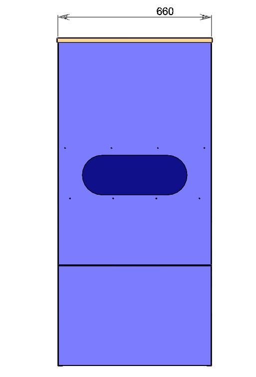 Бункер выполнен из металла толщиной 1 мм и имеет верхнюю откидную крышку, через которую загружается пеллета. Внутри, бункер имеет специальные скосы, которые необходимы для того, чтобы пеллета не «зависала» на его стенках, а падала в приемное окно. Приемное окно бункера рассчитано на шнеки диаметром до 90мм, а за счет того, что оно вытянуто по горизонтали, шнек можно удобно расположить как слева, так и справа от котла или горелки.