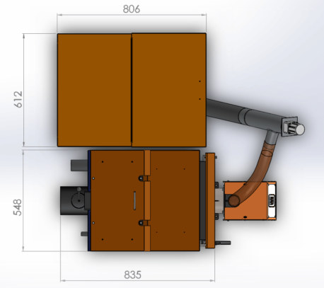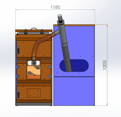 - Контроллер BrainChip. Используется для управление горелкой. Имеет интеллектуальную систему управления всеми процессами, включая контроль над подвижными колосниками для автоматического удаления золы из камеры сгорания.