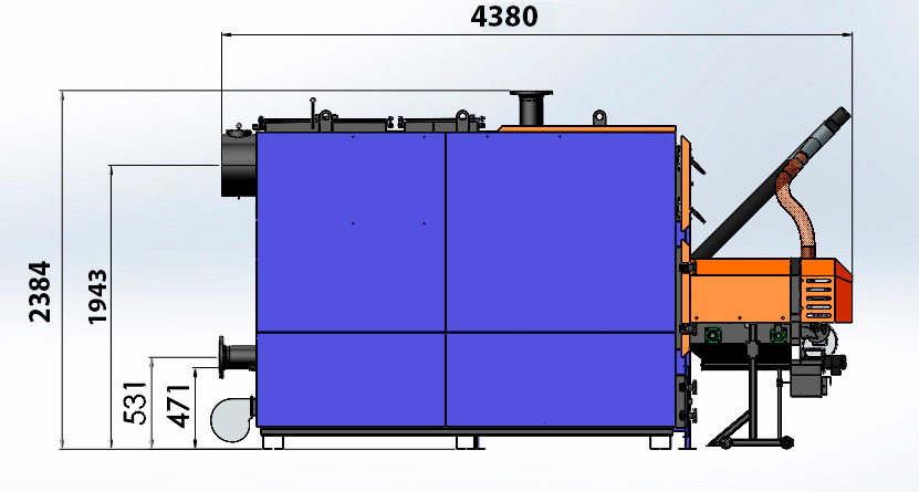 — Перед фронтальной частью котла нужно оставить не менее 0,8 м + длина котла для обслуживания и загрузки топлива.