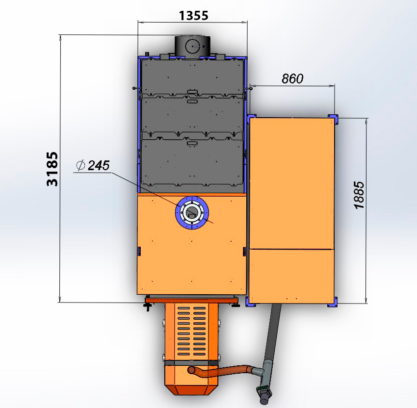 При нормальном функционировании пеллетного котла 500 кВт, температура выходящих газов не превышает 150°, что является прекрасным показателем, похвастаться которым может далеко не каждый котел такой же мощности.