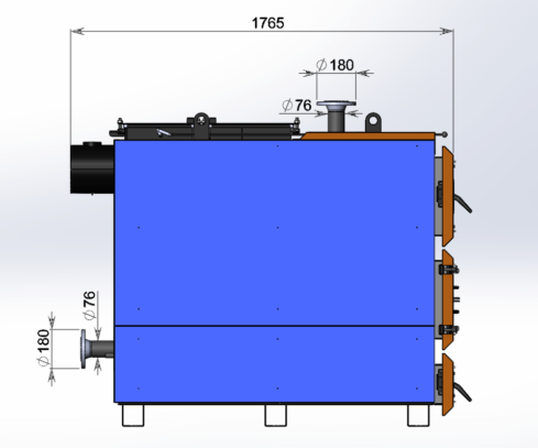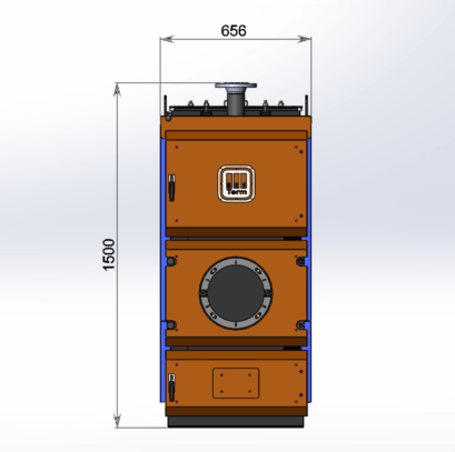 Финальным этапом сборки является окожушивание котла металлической обшивкой толщиной 1мм, окрашенной порошковой покраской.