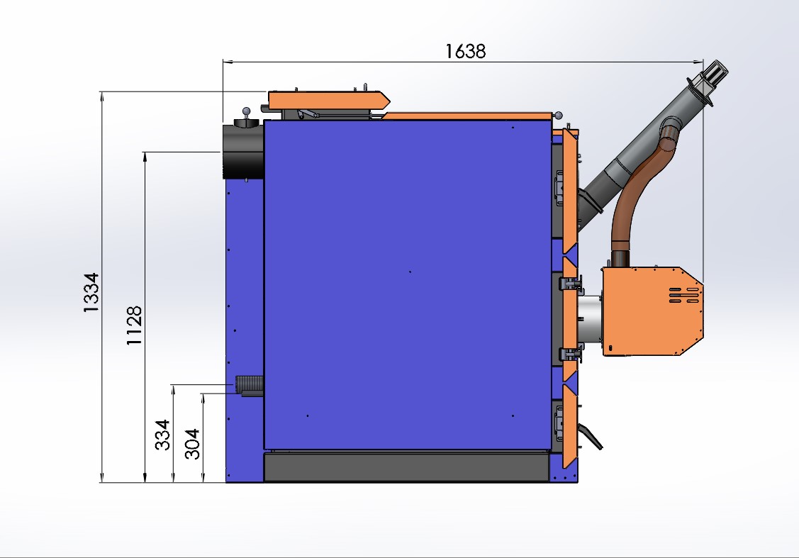 При нормальному функціонуванні пелетного котла 50 кВт, температура газів, що виходять, не перевищує 150°, що є чудовим показником, похвалитися яким може далеко не кожен котел такої ж потужності.