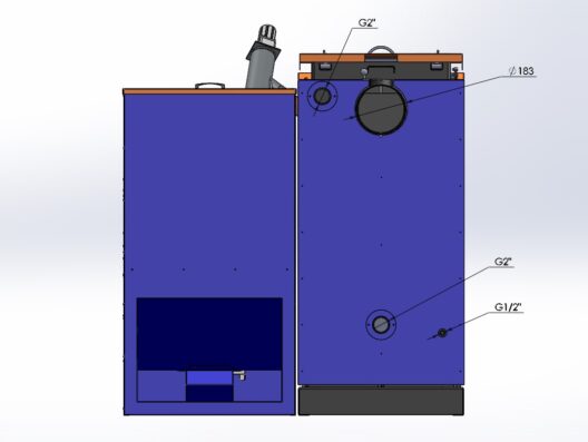 - Додаткові опції. Якщо планується використання палива з високою зольністю, яке забруднює продуктами згоряння теплообмінник, можна замовити дообладнання пелетного котла 50 кВт механічною або автоматичною системою очищення.