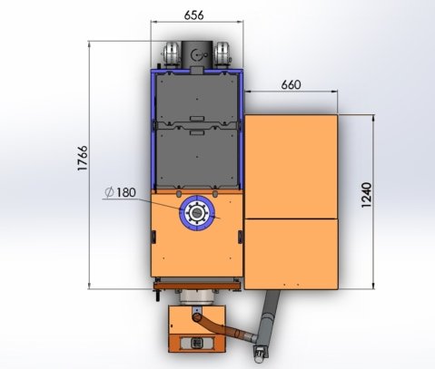 - Додаткові опції. Якщо планується використання палива з високою зольністю, яке забруднює продуктами згоряння теплообмінник, можна замовити дообладнання пелетного котла 100 кВт механічною або автоматичною системою очищення.