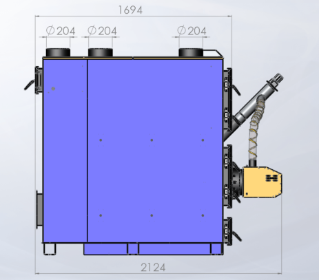 Високий ККД котла (до 92%) досягається за рахунок триходової, жаротрубної конструкції теплообмінника, який з максимальною ефективністю відбирає все тепло, яке йде від згоряння пелети, а температура вихідних газів, при чистому ТГ і при номінальній потужності не перевищує 170 0С, що є дуже хорошим показником для такого типу обладнання.